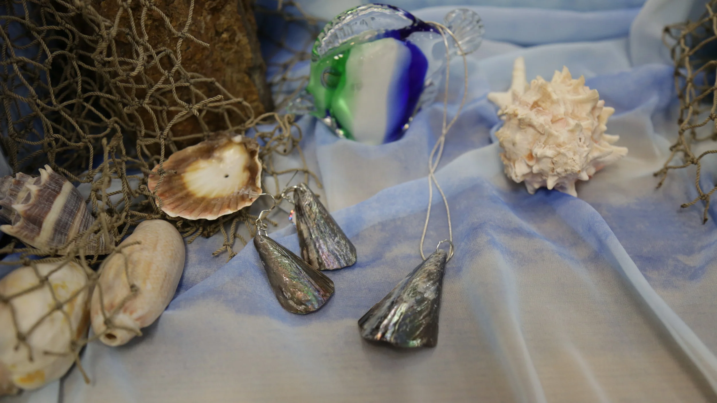 Past and Present is pleased to announce this line of hand-crafted jewelry from *Poseidon's Mistress. This collection of mermaid accessories includes earrings, necklaces, bracelets (for wrists and ankles), and matched sets created from seashells of the Florida coast. The shells have been lacquered to harden and preserve them. They are mounted on surgical steel posts or strung with sterling silver chain. Affordably priced, they add a touch of the tropics that will make any mermaid proud to wear them.
